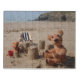 Photographic image of Teddy Henry, Julian and Isaiah (miniature bears) amongst the sandcastles in Cornwall. The image is part o the Teddy Henry Collection.