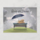 TWO TEDDY BEARS IN LOVE, HUG IN THE PARK BENCH ON A RAINNY DAY. THEY HOLD AN UMBRELLA AND THEIR LOVE ILLUMINTES THE DARK, GLOOMY RAINNY DAY. IT READS RAIN OR SHINE, REFFERING TOT HE LONS LASTING LOVE