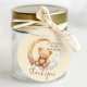 Introducing our adorable 'teddy bear on Moon' baby shower favor tag, the perfect addition to any baby shower celebration. This charming design features a cute brown bear sitting on a crescent moon, creating a whimsical and enchanting design that will captivate your guests.