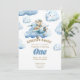 A whimsical scene featuring a cuddly bear confidently navigating an airplane through fluffy clouds, symbolizing the journey of a child's first year.