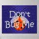 Don't Bug Me slogan with the red ladybug graphic. Great for those in the social networking game who like to choose who to be bugged from. Great t-shirts, sweatshirts, mugs, stickers, and other gifts for home, school, or fun. Good for the government paranoia crowd, too.