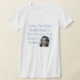 My overall review is that the T-shirt is nice, it fits true to size however the font is significantly smaller than advertised and you can't read it. The printing is unreadable and there is a strain to read it. It does not look like the advertised product. Maybe the shirt color is darker or a larger more visible font should have been used. Photos with and without flash and font is barely legible.