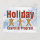 Well, it's that time of year. Food and the need to exercise it off. Get the fun slogan Holiday Exercise Program, Gingerbread Jumping Jacks with the gingerbread men in jumping jack mode. Cute, colorful, humorous postcards and other gifts, and just right for the fitness man or woman who also likes a feast or two.