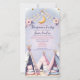 Invite little dreamers to a slumber under the stars with our bohemian teepee party invitation. Gentle pastel teepees mingle with soft floral touches and a sprinkle of starlight, crafting a whimsical scene for a night filled with magic and giggles. At the heart, a soft crescent moon illuminates the event's details against a tranquil azure sky dusted with stardust. Perfect for a birthday or any festive gathering, this invitation is your call to a cozy, enchanting celebration that will weave lasting memories.