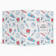 A binder with a dental themed pattern. Featuring colorful illustrations of teeth, toothbrushes, and various dental tools.