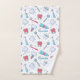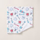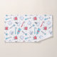 Towel set with a dental themed pattern. Featuring colorful illustrations of teeth, toothbrushes, and various dental tools.