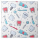 Ceramic tile with a dental themed pattern. Featuring colorful illustrations of teeth, toothbrushes, and various dental tools.