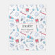 Blanket with a dental themed pattern. Featuring colorful illustrations of teeth, toothbrushes, and various dental tools.
