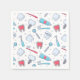 Paper napkins with a dental themed pattern. Featuring colorful illustrations of teeth, toothbrushes, and various dental tools.