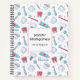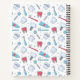 Spiral notebook with a dental themed pattern. Featuring colorful illustrations of teeth, toothbrushes, and various dental tools.