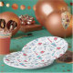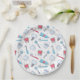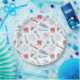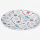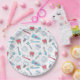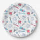 Paper plates with a dental themed pattern. Featuring colorful illustrations of teeth, toothbrushes, and various dental tools.