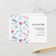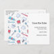 Save the date postcard with a dental themed pattern. Featuring colorful illustrations of teeth, toothbrushes, and various dental tools.