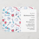A retirement invitation with a dental themed pattern. Featuring teeth, toothbrush, and dental tools.