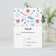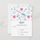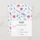 An RSVP card with a dental themed pattern. Featuring colorful illustrations of teeth, toothbrushes, and various dental tools.