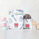Wrapping paper with a dental themed pattern. Featuring colorful illustrations of teeth, toothbrushes, and various dental tools.