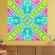 Experience the vibrant energy of 'Telekinesis', a captivating addition to the Directions Collection. Symmetrical and dynamic, this piece features a central small circle with eight radiating directions. Four lime green lines extend to the corners, accompanied by dark blue hash marks, while the other four pathways, in bright turquoise, share the same dynamic energy. Angular, holly tree-like dark turquoise shapes cut across the page, creating an exhilarating movement towards the edges.