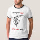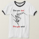 A perfect t-shirt for skiers, preferring either alpine or telemark style of skiing. Red and black text saying 'Free your heel, free your mind' and an image of a telemark skier in action. Product fully customizable