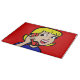 The Telephone Girl Comic Strip Cutting Board features a red background and a drawing of a chatty girl with blonde hair, excited eyes, and an open mouth with pink lips. She is talking on a red, retro style, corded phone. Her blue top is barely visible at the bottom of the drawing. It's obvious by looking at her that she has much to say and she isn't afraid to say it, even if she has to talk for hours! Did you hear the latest? Don't worry. If you didn't, she'll be happy to tell you.