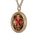 I chose gold plated so that the metal would not react with my skin oils and perspiration. But, I changed the necklace from the gold plated one to a sterling silver. My skin cells will tarnish the silver. But it will not look as bad if some portion of the gold plated necklace somehow became compromised. Zazzle did a find job turning the picture into a pendant for me. As you can see, the colors and the printing of the final product, match the preview. The picture I took is not very clear. But I am pleased with the product I received.