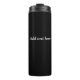 Black tumbler with white text, ready to personalize. Add your own text.