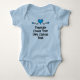I love this onesie, it's adorable! The material is amazing so soft and the color is a perfect sky blue. When my daughter-in asked me to help with her Baby Shower, I was thrilled. It was co-ed & the theme was Cookie Monster. I had no idea that the whole world was after that big blue Monster. Thank goodness for Zazzle, I got most of the party supplies here. Then I found this onesie! They made my customization so easy. The colors are awesome. I wrote the word "Loved" across the bottom of the Cookie Monster in red letters when I was putting it together. I saw the preview & liked it. But to see it in person, OH, it was fantastic, they do exceptional work! I am so glad that I found this onesie/bodysuit. The production time and shipping were exactly what I was told, which made it easy to plan the party. Packaging was nice as well. If you are looking at this product, look no further, I highly recommend it! I'm certain that I'll be back to "design" whatever my new Grandson "needs.". The printing on the onesie/bodysuit is crisp, and clean. With perfect colors that blend well with the blue background of the basic material. We are so happy with how it came out.