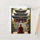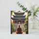 Witness a moment of tranquil reflection as a monk in red robes sits in meditation before a traditional Chinese temple. The detailed artwork showcases the peaceful atmosphere of the scene, with lush greenery and a grand staircase leading to the temple's entrance. A perfect piece for anyone seeking to add a touch of spiritual calm to their surroundings.