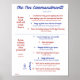 Poster of the 10 Commandments, worded with kids in mind (original language appears below each one); also includes New Testament's "Greatest Commandment"