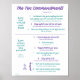 Poster of the 10 Commandments, worded with kids in mind (original language appears below each one); also includes New Testament's "Greatest Commandment"
