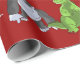 Red wrapping paper featuring all the monsters from the book The Ten Little Monsters Standing in a Line.