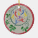 Celebrate the 12 Days of Christmas with this hand painted ornament of Ten Lords Leaping and hand lettered, “The Tenth day of Christmas on the back. 2.87” round, this this watercolor porcelain ornament adds a touch of whimsy to a special gift or hung on a tree. One of a set of twelve scenes illustrating the traditional carol, The 12 Days of Christmas.