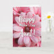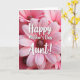 This card shows a close-up of daisy-like flowers in soft pink shades, with one large bloom centered like it’s leaning in for a gentle hug ❤️. Across the middle of that main flower, the message “Happy Mother’s Day Aunt!” sits clearly in white lettering, standing out against the petals without feeling harsh. The surrounding flowers fade into a blurred background, creating a cozy, intimate setting that feels like a quiet moment shared between loved ones. Light falls softly across the petals, showing a tender shift from pale edges to deeper pink near the center, like a warm blush. The flower’s core is packed with tiny clustered florets in earthy tones—deep plum, rusty orange, and hints of brown—adding rich texture and contrast. A faint shadow behind the white text gives it a slight lift from the petals, as if the words are gently resting on the bloom. 🌼 The background stays dreamy and out of focus, while the central flower’s detailed center remains sharp and richly colored.