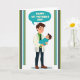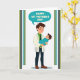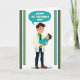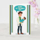 This card shows a sweet illustration of a caring adult gently cradling a swaddled infant, with a tender, affectionate gaze that reads like close family or dear friends ❤️. The figures are drawn in a simple, friendly style with rosy cheeks, standing on a white background that keeps the focus on their quiet connection. The adult wears a light professional jacket over a bright green shirt with a dark tie, leaning in slightly as if savoring the moment. The baby is wrapped snugly in a turquoise blanket, looking up calmly as though responding to the adult’s attention. Above them, a turquoise speech bubble holds a short celebratory message in clear lettering, centered near the top. Vertical border stripes frame the scene on both sides in deep teal, light blue, sage green, and dark olive, adding a gentle, garden-like touch 🌼. The lighting is even and soft with no harsh shadows, and the turquoise bubble echoes the baby’s blanket while the muted side stripes sit neatly along the left and right edges.