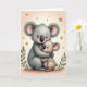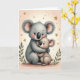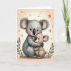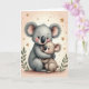 Designed with two cuddly marsupial-like characters at the center, the larger one is a gentle gray figure with big fuzzy ears and a dark nose, holding a smaller light-brown companion close. Their rosy cheeks and wide dark eyes meet with a tender, trusting look that reads like quiet romance or deep friendship ❤️. Soft, plush-looking fur is shaded with light blush tones, and tiny pale speckles sit on their coats like dusted starlight. The background is a pale peach that fades into a creamy glow, giving the scene a calm, dreamy feel. Small golden stars and fine scattered dots float across the backdrop, adding a night-sky sparkle without feeling busy. Along the lower edges, simple green leafy sprigs frame the pair like a gentle garden border 🌼. A short greeting is placed near the top in white lettering, standing out clearly against the warm sky. The bottom corners show the leafy sprigs curving upward with a few small star shapes sprinkled between them.