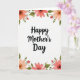 This greeting card features a bright white background with a soft floral border that feels like a gentle hug ❤️. Centered on the page, the words “Happy Mother’s Day” appear in flowing, calligraphic lettering in a deep, dark tone that stands out clearly. The text sits comfortably in the open space, giving the message room to breathe while drawing the eye first. Around it, peach, blush pink, and coral flowers lean inward as if gathered close together, suggesting a tender closeness like friends or family sharing a quiet moment 🌼. Each bloom has a slightly darker center for depth, with petals that look lightly brushed for a soft, airy finish. Slender green stems and leafy sprigs curl along the edges, creating a natural frame without crowding the middle. The border is made up of warm-toned blossoms and layered green leaves wrapping the top, sides, and bottom like a garden wreath.
