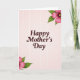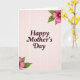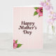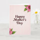 This greeting card features a soft blush pink background with a faint, glowing grid that adds gentle texture and a calm, caring mood. Centered on the front, the words “Happy Mother’s Day” sit prominently in a deep maroon serif style, giving the message a steady, affectionate presence ❤️. The smooth letter shapes feel welcoming against the pale backdrop, like a warm note meant to be read up close. In the upper right corner, a cluster of fuchsia flowers leans inward as if offering a quiet hug, with layered petals surrounding bright golden-yellow centers. A matching floral arrangement appears in the lower left corner, creating a balanced diagonal that guides your eyes back to the middle 🌼. Green leaves in varied shades frame the blossoms, adding a fresh contrast that keeps the pink tones feeling lively but gentle. Soft, diffused lighting makes the maroon text stand out while the delicate grid remains subtle, and the flowers show fuchsia petals with sunny yellow centers and crisp green leaves in the upper right and lower left corners.