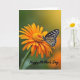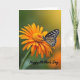 Designed with a close-up nature scene, the image centers on a large daisy-like flower in rich tangerine orange, its petals fanning out around a dense golden-yellow center. Resting on one petal is a pale butterfly with wings spread wide, patterned with dark markings that look like a careful mosaic against creamy white and soft yellow tones. Its thin antennae angle forward as if leaning in, giving the moment a gentle, companionable feel ❤️. Behind them, the background falls into a smooth blur that shifts from deep leafy green on the left to warm honeyed light on the right, like a quiet embrace. Along the bottom edge, a short line of text sits centered in a small, light-colored font that stands out against the darker blur. The sharp focus on the petal veins and the butterfly’s wing edges makes the pair feel close, like two friends sharing the same sunlit spot 🌼. The orange petals radiate outward beneath the butterfly, while the glowing yellow center sits slightly below mid-frame.