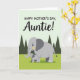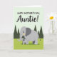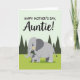 This card shows two stylized elephants in a calm nature scene, with the larger one standing close to the smaller one in a way that feels caring and close ❤️. Their bodies are shaded in light and dark greys, and both have soft yellow touches on their cheeks and inside their ears that add a gentle, affectionate look. The adult’s trunk curves toward the youngster like a protective hug, while the little one tilts its face upward as if sharing a trusting, tender moment. Across the top, a celebratory message sits centered in black lettering, standing out clearly against the pale background. Below the words, the pair stands on a bright lime-green strip of ground that gives the scene a fresh, sunny lift 🌼. The sky shifts into a lighter green, keeping the mood soft and quiet without drawing attention away from the two figures. In the distance, a few dark green triangle shapes suggest simple trees or hills, spaced out so the scene stays open and uncluttered. The overall layout keeps the text at the top and the two elephants below, framed by green ground, pale green sky, and scattered dark green shapes.