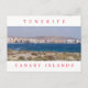 A beautiful view of kite surfers on the island of Tenerife in the Canary Islands with the village of El Médano in the background printed on a postcard.