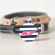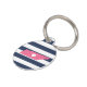 Let your furry friend show some home state pride with this cute Tennessee pet ID tag. Design features a white silhouette map of the state of Tennessee in pink with a white heart inside, on a preppy navy blue and white stripe background. Add your pet's name and contact information to the back in white lettering on a pink background.