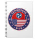 Badge of Tennessee with flag of Tennessee and flag of USA colors, rounded shape.
