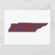 There will be no mistaking your state pride when people see the shape of Tennessee and its name prominently displayed in red with blue background on the front of this postcard.