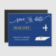 You chose a special place for your wedding. Now it's time to celebrate it with this keepsake save the date magnet card, featuring a silhouette map and a tiny plane headed to your destination. To move the heart to the place of your wedding, click personalize and then "customize further."