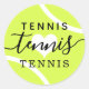 Tennis ball design stickers with repeating words in cute feminine girly and modern fonts on a simple bright yellow-green tennis ball background, great for a tennis birthday invitation, favor, or gift.