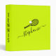 Personalized custom tennis binder for the coach, captain, or team to keep analysis, schedules, and plans organized in bright green yellow with black and white elegant script name and a simple modern racket and ball icon monogram design. All fonts and colors can be edited to match your office or team or school colors.