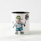 Tennis Cartoon Two-Tone Coffee Mug for kids and adults. Add your own custom text. Fun cup for player, coach, stringer etc.