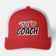 Tennis coach hat with open mesh back. Custom color cap for player, coach, trainer, captain, umpire etc. Sporty ball design with bold text. Personalize with your own text or name. Also great for padel.