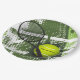 Tennis Design Paper Party Plate, with customizable text. For no text, delete sample text and leave blank.