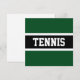 This sporty design features athletic TENNIS text inside a black center stripe highlighted in white against forest green outer edges.