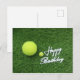 Tennis Happy birthday and balls on green grass Postcard