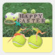 Tennis Happy Easter with ball and eggs on green Square Sticker